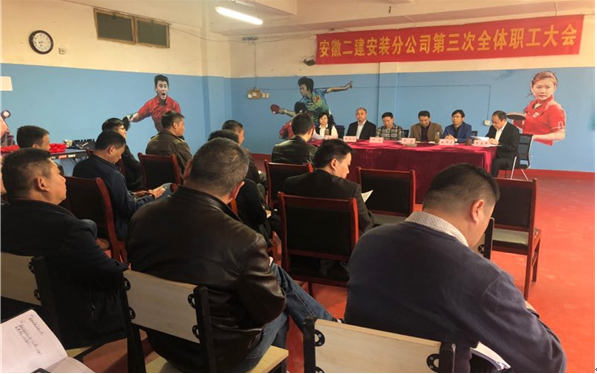 按照公司的統一部署和要求,安裝分公司于3月28日上午,召開了2017年職工大會,分公司全體職工參加會議,會議由分公司黨支部書記朱慶年主持。公司工會主席李林到會指導。