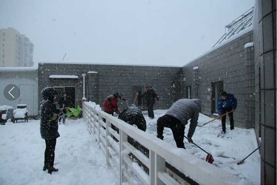活動過程中,大家不畏嚴寒,頂著風(fēng)雪,揮舞著鐵鍬對屋面、停車場以及公司大門外的積雪和結(jié)冰進行清掃,經(jīng)過4個多小時的奮戰(zhàn),大家齊心協(xié)力,分工明確,配合默契,終于將積雪全部鏟除。雖然室外溫度很低,大家的衣服、鞋帽都已濕透,但大家勞動的熱情和團結(jié)的力量讓這個冬日變得格外溫暖。掃雪活動不僅保證了職工的出行安全,更通過此次活動,充分體現(xiàn)出公司員工良好的精神面貌和團隊凝聚力。