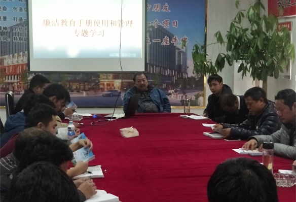 最后孟慶武書(shū)記作總結(jié)發(fā)言,希望通過(guò)這次開(kāi)展廉潔教育手冊(cè)學(xué)習(xí)和保管的專(zhuān)題會(huì),能進(jìn)一步增強(qiáng)項(xiàng)目部黨員領(lǐng)導(dǎo)干部和重要崗位管理人員的廉潔自律意識(shí),提高拒腐防變能力,營(yíng)造一個(gè)風(fēng)清氣正的工作環(huán)境。