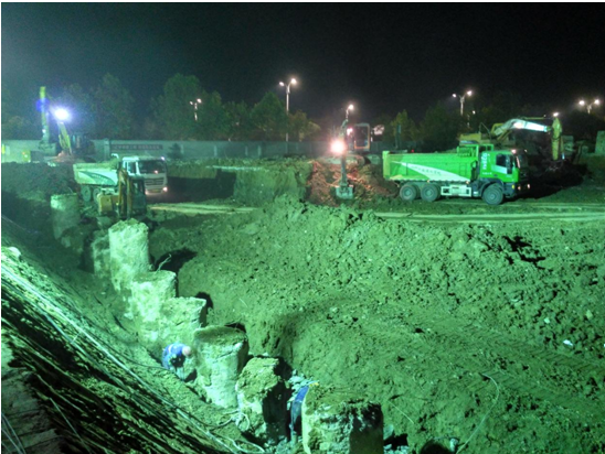 目前,施工現場已全面展開,各工序流水作業。項目全體人員發揚不畏艱難,迎難而上的精神,采用“白加黑”模式,在施工現場迅速掀起了大干的熱潮,為順利完成年度指標任務打下了堅固的基礎。