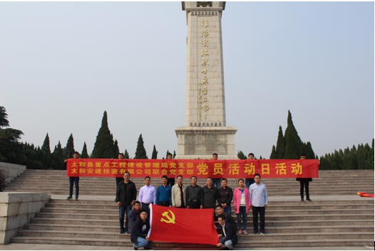 紅色之旅途中,太和安建投資有限公司聯合黨支部書記高偉發起了黨員和入黨積極分子共同參與的組織生活會,從思想、黨性認識上對黨員和入黨積極分子進行了重大洗禮。太和縣委辦副主任、太和縣重點局苗玉勇給本次活動致辭,并給紀念碑獻花藍,接著薄局帶領我們重溫入黨誓詞,積極學習黨的歷史、黨的知識。