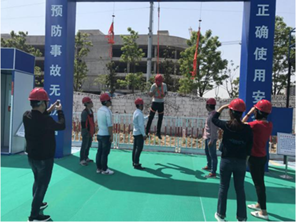 生命至高無上,安全責任為天。為提高員工的安全防范意識,保障安全生產順利進行,淮北東岳雅苑項目部不斷創新安全教育方式,注重以寓教于樂的形式開展全員安全教育,安全體驗館應運而生。東岳雅苑項目安全體驗館分為8大體驗區,主要包括平衡木體驗、標準化防護用品使用展示、鋼絲繩正確使用方法體驗、安全帽撞擊體驗、安全綜合用電體驗、安全教育講堂、滅火器演示及正確使用體驗、高處墜落體驗等,基本涵蓋施工現場各類易發安全生產事故。安全體驗館建成后,項目部便組織班子成員進行先行體驗。安全體驗館內,大家本著認真學習的態度,有序地在各個體驗區依次體驗、參觀。通過親身體驗,大家進一步意識到了生命的脆弱,安全生產只有起點,沒有終點,并表示在今后的施工作業中長鳴安全警鐘,做好安全防護措施。