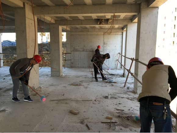 近日,由于工人到期回國人數較多,為滿足業主交房要求,阿爾及利亞康斯坦丁6000套工程項目部動員項目管理人員進行樓層垃圾清理,參與現場放線測量。