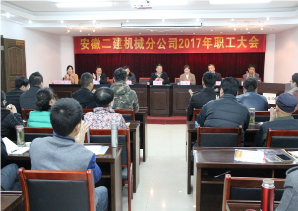 立足新起點,實現新跨越!3月23日上午,安徽二建機械分公司在原公司三樓會議室隆重召開2017年職工大會。公司黨委書記劉賢奇、紀委書記仇多維、女工主任王俊及機械分公司領導班子成員與職工40多人參加了會議。