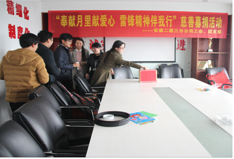 3月為全國學雷鋒月,三分公司團支部、工會舉辦“奉獻月里獻愛心 雷鋒精神伴我行”活動,以愛心募捐方式為貧困學生獻上自己的一份微薄之力。通過一個多星期的信息收集整理,確定了此次愛心資助對象劉雅芹同學。通過走訪得知,劉雅芹現就讀大一,家里三口人擠在兩間破瓦屋內。奶奶年邁多病,父親單身,劉雅芹為其養女,家中僅靠父親一人打零工來維持奶奶的醫藥費和劉雅芹的學費及一家人的日常生活。此次活動得到了公司領導、同事的大力支持,大家在公司會議室舉行了募捐儀式,同時在分公司所屬項目部開展募捐活動,大家踴躍參與,獻上自己的一份愛心,一共為劉雅芹同學募捐學費4000元。
