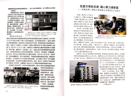 近日,由安徽省新四軍歷史研究會淮海委員會主辦的《淮海通訊》雜志第三十期刊登了安徽二建四分公司簡介,同時介紹了雙方特色亮點共建活動。