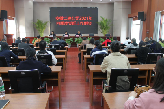 10月26日上午,安徽二建公司召開(kāi)2021年四季度黨群工作例會(huì),公司黨委副書記、工會(huì)主席王軍,黨委委員、紀(jì)委書記沈壯出席會(huì)議,機(jī)關(guān)黨群部門全體人員、基層各單位黨支部書記、團(tuán)支部書記、綜合辦人員參會(huì)。會(huì)議由黨委工作部主任施用宏主持。