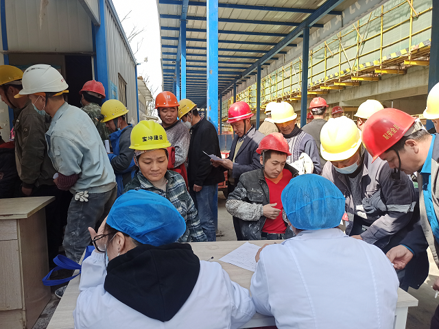 體檢過程中,項目部管理人員協助醫護人員維護現場秩序、登記信息、協助體檢,保障了現場體檢工作的有序開展?,F場醫護人員為工友們測量身高、體重、血壓、心率等多項身體指標,詢問他們的身體健康狀況、生活作息規律,為他們講解了工作中注意事項和疾病預防措施。