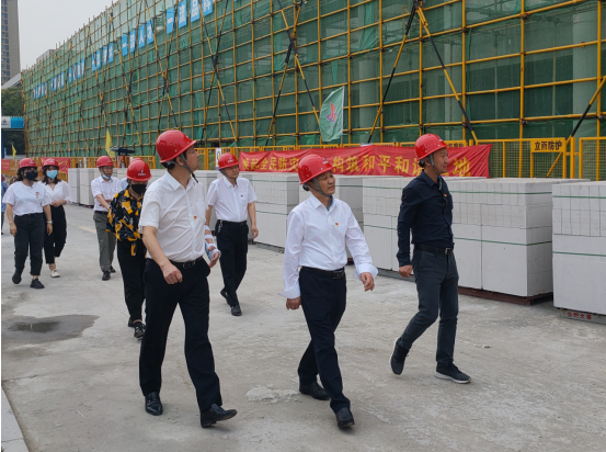 王軍一行首先深入施工現場,詳細查看了項目現場安全文明創建、工程質量、樣板展示、施工進度等情況,查閱了黨群工作資料,并到辦公區、生活區全面了解職工的工作生活環境。隨后,在聽取了項目黨支部書記“三號聯創”的工作匯報后,驗收組對項目創建工作取得的成績給予了肯定,同時對項目創建過程中不足之處提出了意見和建議。檢查組一行一致認為項目“三號聯創”達到公司標準,通過驗收。