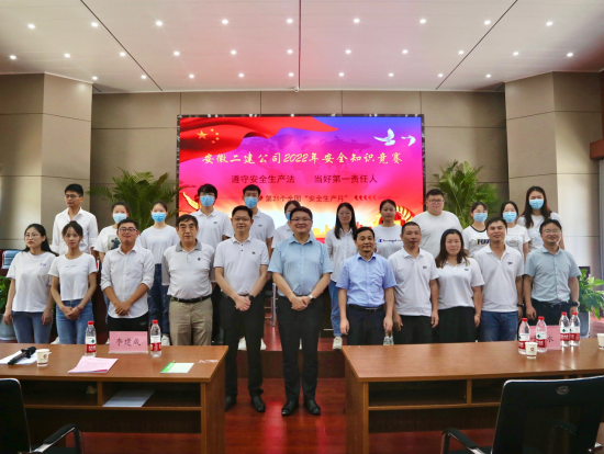 今年六月是第21個“全國安全生產月”,為了貫徹落實活動主題“遵守安全生產法 當好第一責任人”,用以賽促學、以活動促宣傳的方式提高廣大職工的安全意識,6月17日上午,公司工會牽頭,與安全管理部聯(lián)合舉辦了安徽二建2022年安全知識競賽活動。公司黨委副書記、總經理李建成,黨委副書記、工會主席王軍出席活動,黨委委員、副總經理葉和永,安全總監(jiān)、安全管理部主任曹建,工會副主席、女工委主任王俊出席并擔任評委。