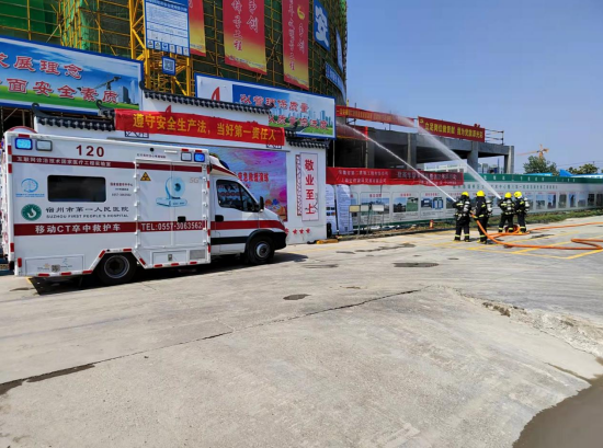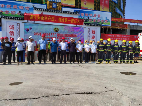 6月24日下午,第四分公司宿州三館一院一中心PPP項目部與宿州市埇橋區(qū)住建局、埇橋區(qū)消防救援大隊、宿州市城東新區(qū)管委會、埇橋區(qū)重點局、上海宏信建設(shè)發(fā)展有限公司聯(lián)合開展2022年“安全生產(chǎn)月”建筑安全應急預案演練。