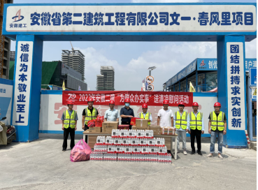 在肥東石塘鎮(zhèn)火龍社區(qū)安置點項目,葉和永為項目職工送上了夏季防暑藥品、飲料、花露水、毛巾等慰問品,叮囑他們要做好疫情防控形勢下的高溫作業(yè)和高溫天氣下的勞動保護。