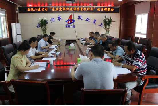 9月2日上午,安徽二建公司在一樓會議室召開了“基層黨組織建設質(zhì)量提升年”活動動員部署會,公司黨委副書記、工會主席王軍主持會議并做工作安排,黨委工作部主任、所屬各黨支部書記參加會議。