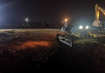 宿徐產業園消防站綜合樓基槽夜間墊層澆筑